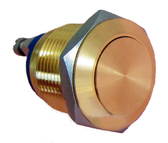 Messing inbouw beldrukker met 22 mm krans. Voor gebruik in bellenborden. Uitermate geschikt voor TRESPA. Fysiek voelbare terugmelding. IP65 (spuitwaterdicht) - IK09. Voor plaatdiktes tussen 0,5 en 10 mm.