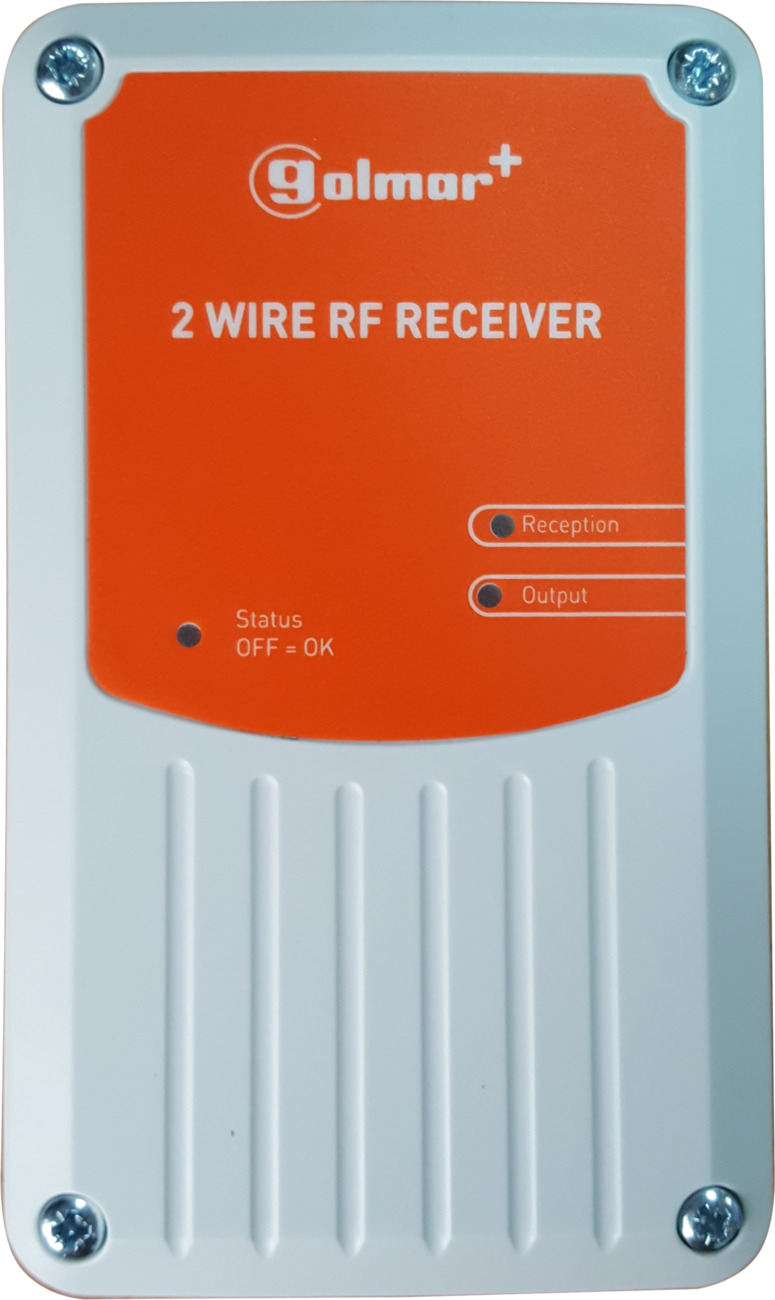 868 Mhz, IP67. In open veld bereik tot 100 meter. Twee aders (FTP of STP, max. 30 meter of 0,8 mm afgeschermd tot max. 100 meter) tussen controller en RF ontvanger. Voeding: 12-24V - Gevoed door de controller