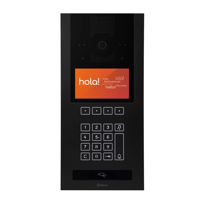 - Vandaalbestendig (IK-07) en waterdicht (IP-65) paneel, gemaakt van 5 mm geanodiseerd zwart aluminium.