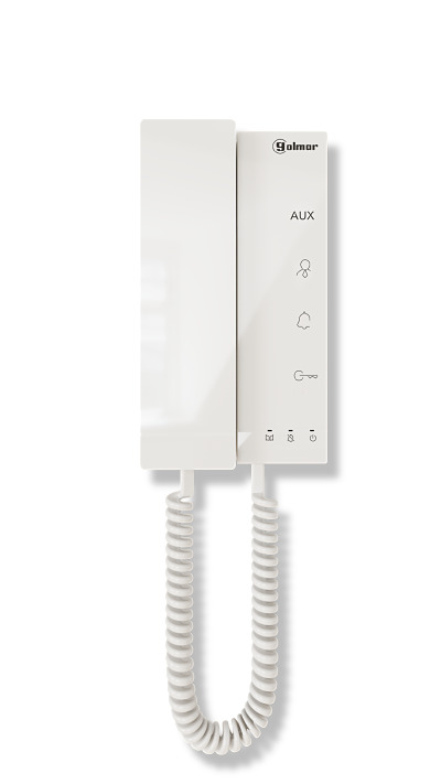Wandmodel. Opbouw slechts 31 mm dun! ABS behuizing. Dipswitch programmeren. Systeem gebonden oproepsignalen voor herkenbaarheid oproep. Ringtone selectie. Capacitieve soft-touch toetsen met feedback: deur openen, AUX (2de deuropener of trappenhuis verlichting), Portier en volume oproeptoon en niet storen. Inclusief kunststof montageplaatje.