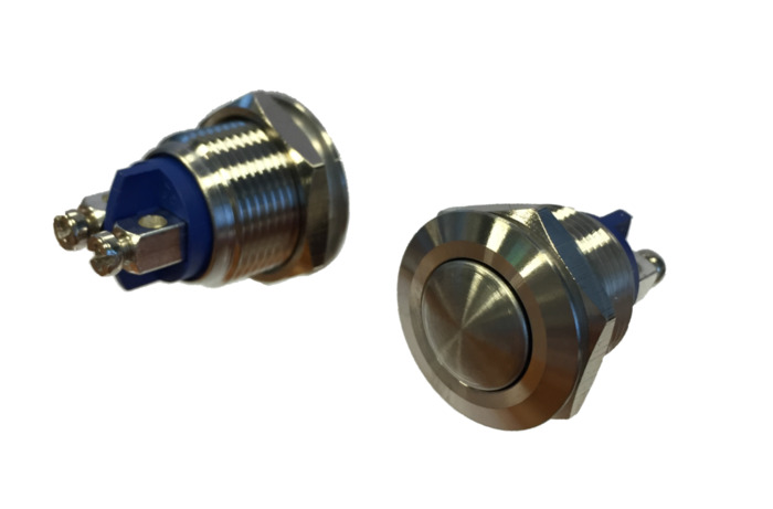 Vernikkelde inbouw vervang beldrukker met 20 mm krans. Voor gebruik in (bestaande) bellenborden. Uitermate geschikt voor TRESPA. Fysiek voelbare terugmelding, IP65 (spuitwaterdicht) - IK09. Voor plaatdiktes tussen 0,5 en 10 mm.